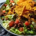 Imagine the late afternoon sun spilling into the kitchen while you prepare this feast. The enticing aroma of seasoned ground beef fills the air, mingling beautifully with the crispness of fresh lettuce and the savory nibbles of cheesy Doritos. This isn’t just a salad; it’s an experience — one that truly celebrates comfort food in a way that will warm your heart and satisfy your cravings.