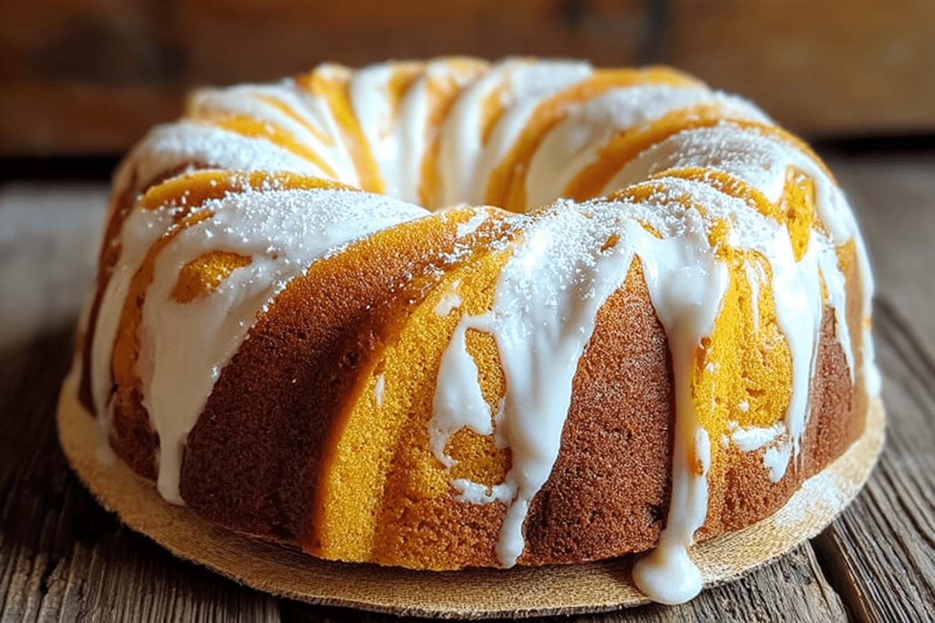 A deliciously moist pumpkin cake swirled with creamy cheese, perfect for autumn gatherings.