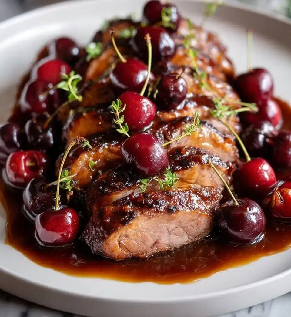A culinary love letter featuring the rich flavors of duck breast paired with a vibrant cherry sauce, creating an elegant and comforting dish.