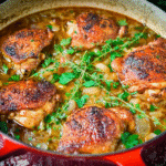 A delicious and easy one-pot meal featuring savory chicken thighs, perfect for spring.
