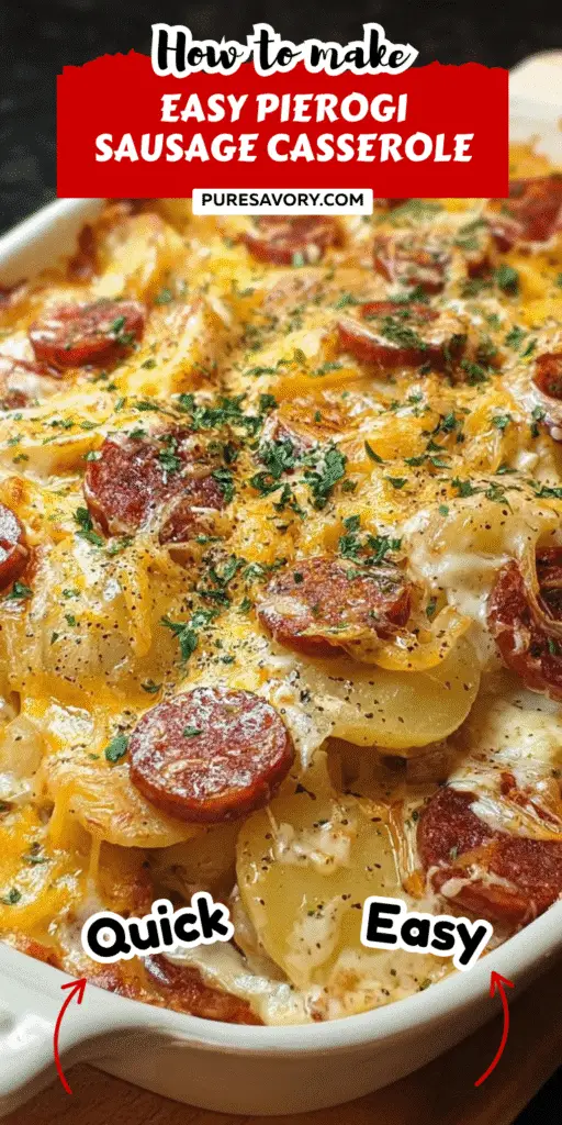 Keywords: easy pierogi casserole, sausage casserole recipes, creamy pierogi bake, comforting dinner ideas, homemade pierogi dishes, family-friendly casserole, one-pan dinner recipes