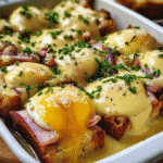 The Eggs Benedict Casserole with Hollandaise Sauce is a delightful reinterpretation of the beloved classic, Eggs Benedict. This dish takes the traditional elements—poached eggs, Canadian bacon, and hollandaise sauce—and transforms them into a hearty casserole that’s perfect for feeding a crowd. The origins of Eggs Benedict can be traced back to the late 19th century, where it was first served in New York City. Over the years, it has evolved into a brunch staple, celebrated for its rich flavors and comforting nature.