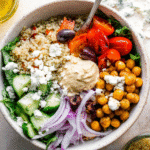 Fresh Mediterranean Quinoa Bowls with Hummus are not just a meal; they are a celebration of health, flavor, and creativity in the kitchen. I hope you enjoy making this vibrant dish as much as I do! If you try this recipe, please share your thoughts in the comments below or share it with your friends and family. Let’s spread the joy of cooking together!