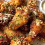 Juicy chicken wings coated in a mouthwatering garlic and Parmesan mixture, perfect for gatherings or cozy nights in.