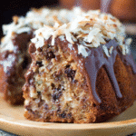 A rich and moist German Chocolate Bundt Cake topped with a delicious coconut pecan frosting.