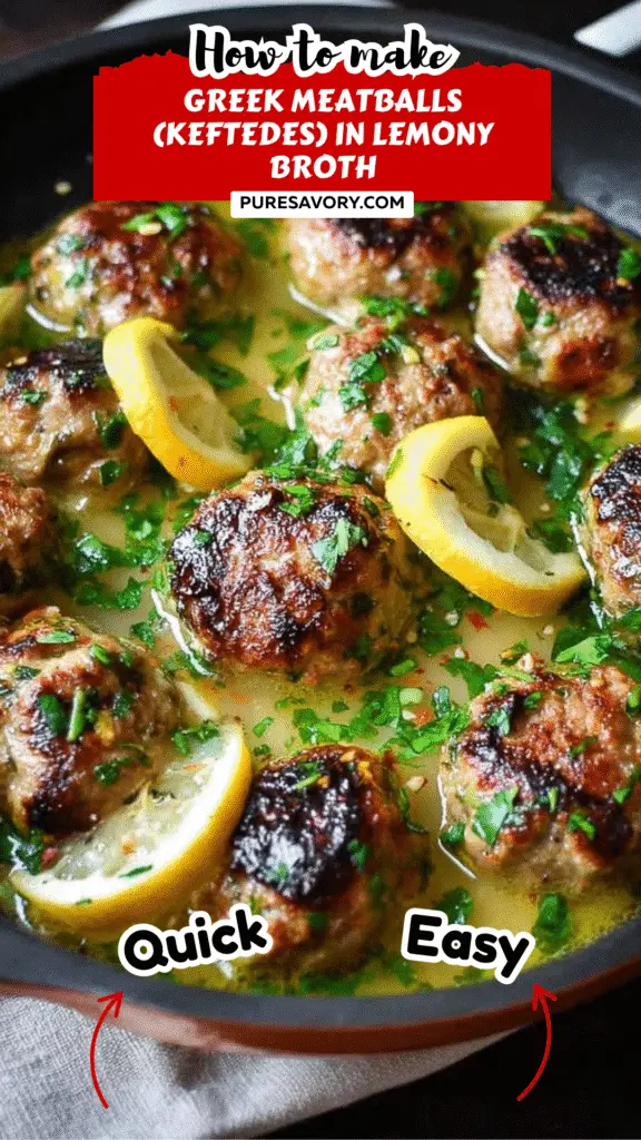 Keywords: Greek Meatballs, Keftedes, Lemony Broth, Greek Cuisine