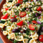 A refreshing and healthy Greek pasta salad perfect for spring dinners.