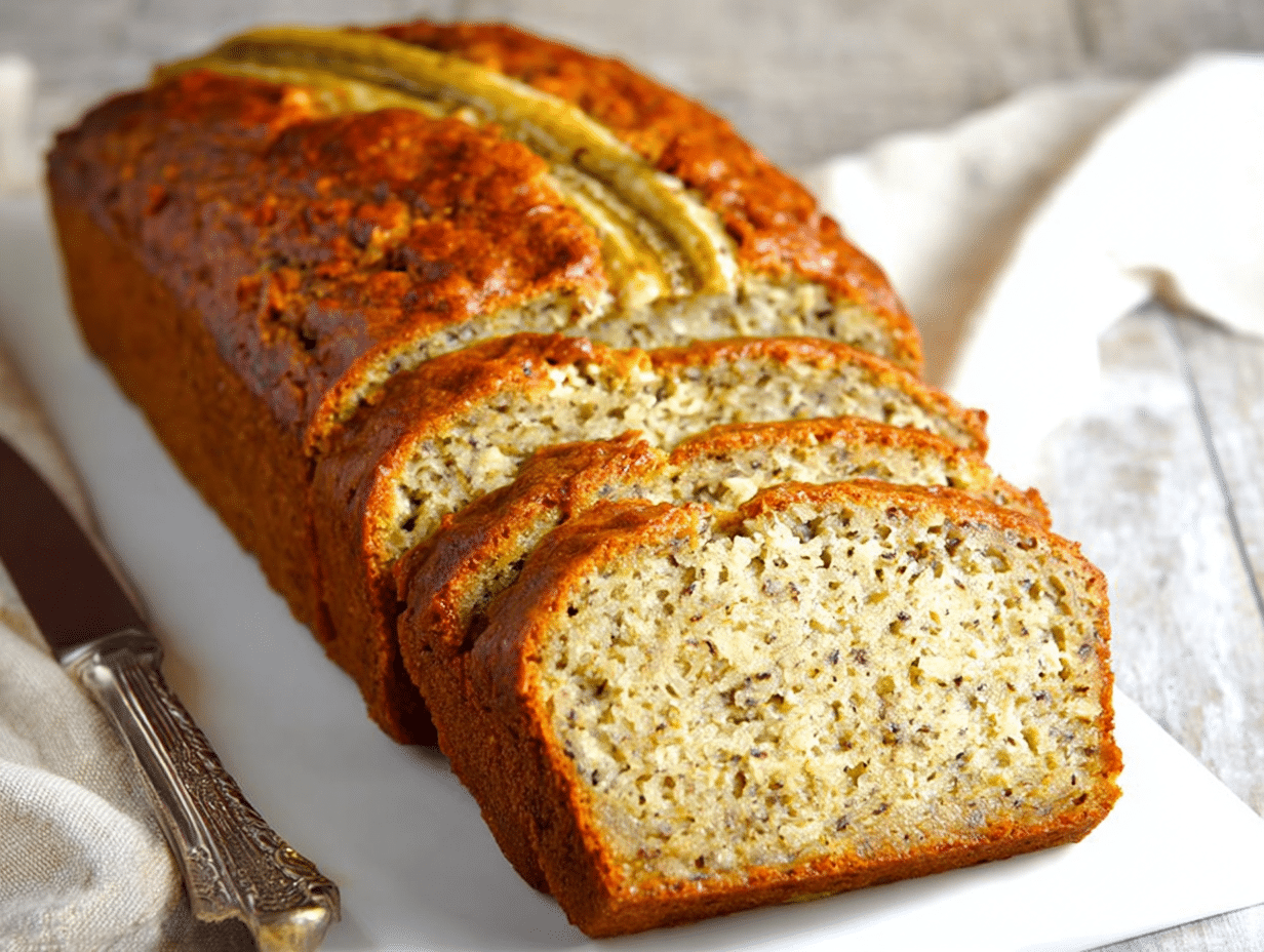 A moist and delicious banana bread made with Greek yogurt for added flavor and nutrition.