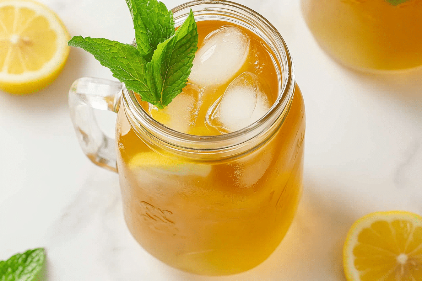 Peach changes everything. I take my standard green tea and lemonade recipe and stir in a quarter cup of peach puree or juice—sometimes even muddled ripe peaches if they’re in season. The result is bright, smooth, and a little Southern.