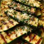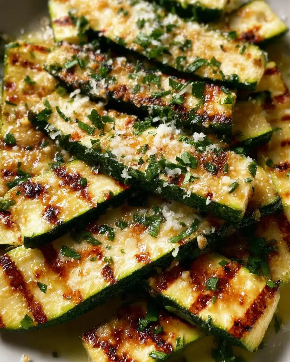 A delightful dish of grilled zucchini enhanced with parmesan and fresh herbs, perfect for summer meals.