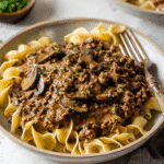 This dish is often served over egg noodles, creating a satisfying meal that’s both hearty and delicious. The combination of flavors melds beautifully, making each bite a delightful experience. Whether you’re enjoying it at home or sharing it with friends, Ground Beef Stroganoff is sure to leave a lasting impression.
