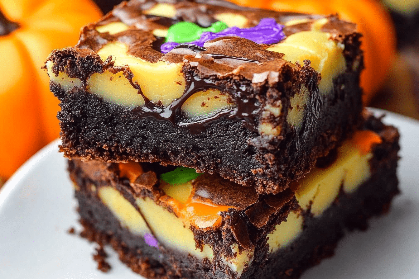 Keywords: Halloween cheesecake brownies, festive brownie recipes, Halloween dessert ideas, chocolate cheesecake brownies, easy Halloween treats, colorful cheesecake brownies, spooky Halloween recipes