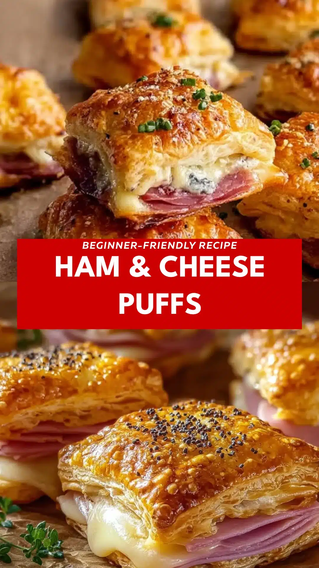 Delicious and flaky Ham & Cheese Puffs, filled with savory ham and melted cheese, perfect for any gathering.