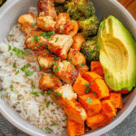 Growing up, my family often gathered around the table, sharing stories and laughter over hearty dishes. The aroma of roasted sweet potatoes and seasoned chicken would fill the air, creating an inviting atmosphere that made everyone feel at home. This Healthy Chicken & Sweet Potato Rice Bowl captures that essence, combining nutritious ingredients into a delightful meal that’s perfect for any occasion.