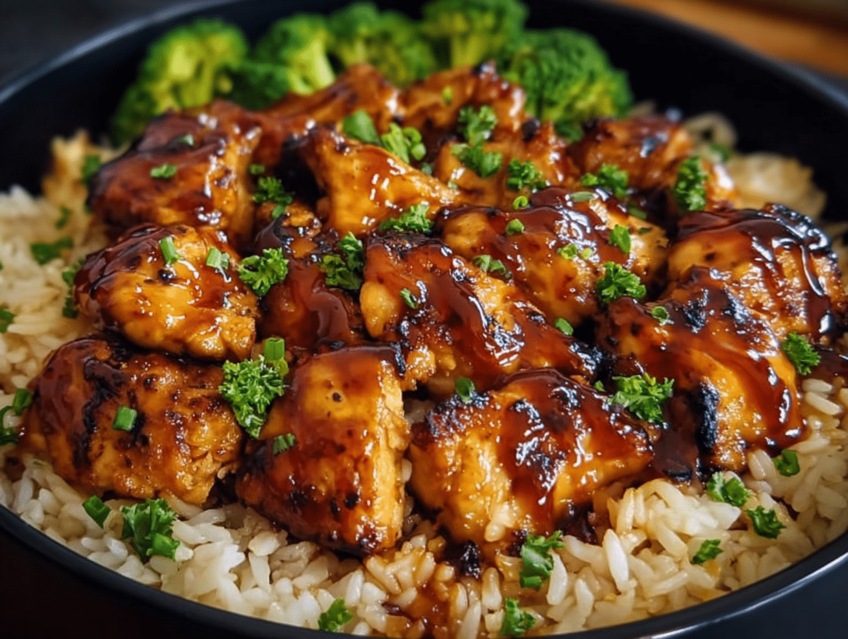This dish is more than just a meal; it’s a celebration of flavors that brings people together. The tender chicken, coated in a luscious honey BBQ glaze, served over fluffy rice, creates a symphony of taste that appeals to all ages. It’s a dish that resonates with the heart, reminding us of family dinners and shared moments around the table.