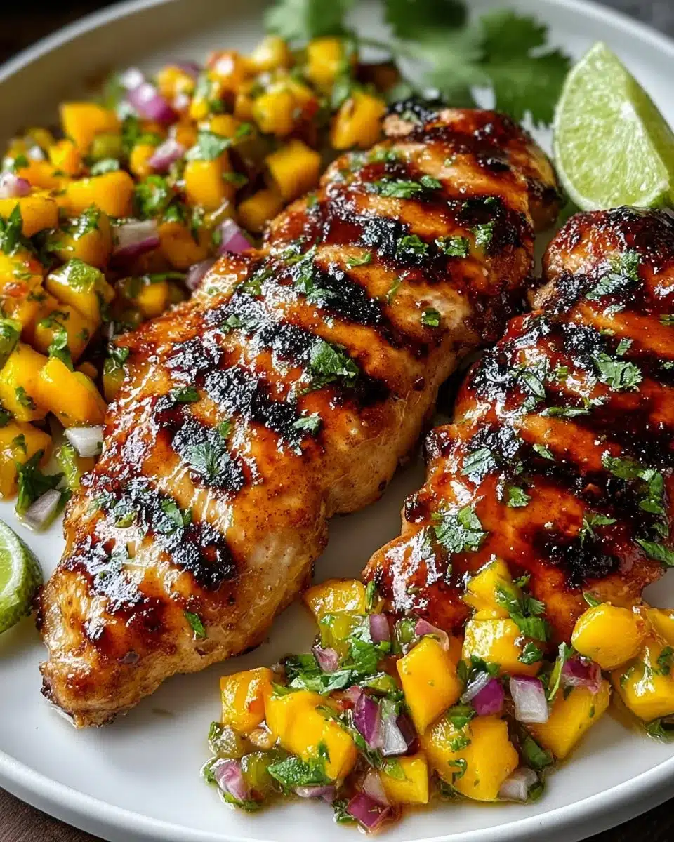 A delightful dish marrying marinated grilled chicken with refreshing mango salsa, inspired by Latin cuisine.