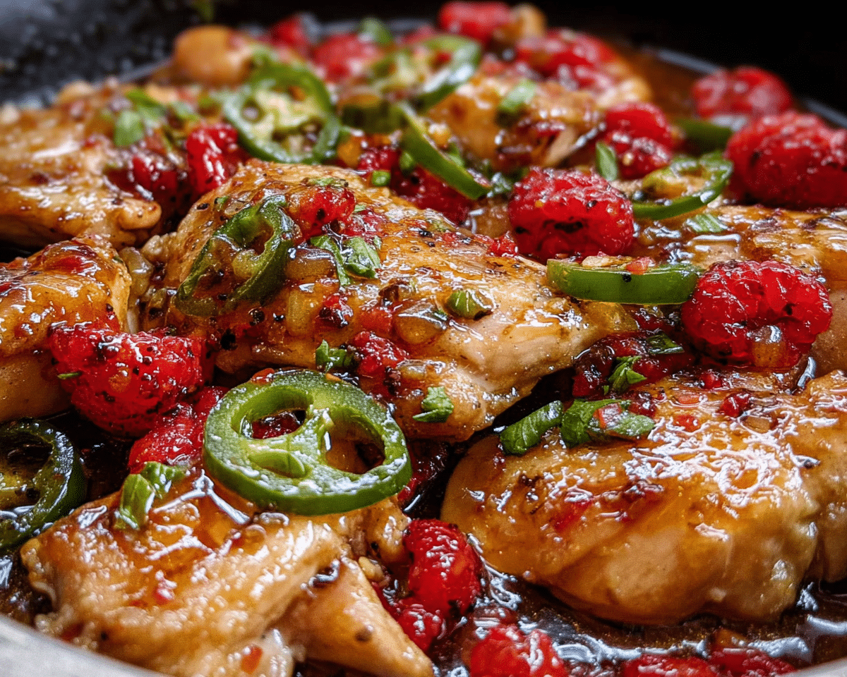 Cooking this dish has become a cherished tradition in my home, where family and friends gather to share stories and laughter over a beautifully plated meal. I encourage you to try this recipe and experience the delightful fusion of flavors for yourself. Whether you’re hosting a dinner party or simply enjoying a weeknight meal, Jalapeno Raspberry Chicken is sure to impress.