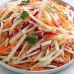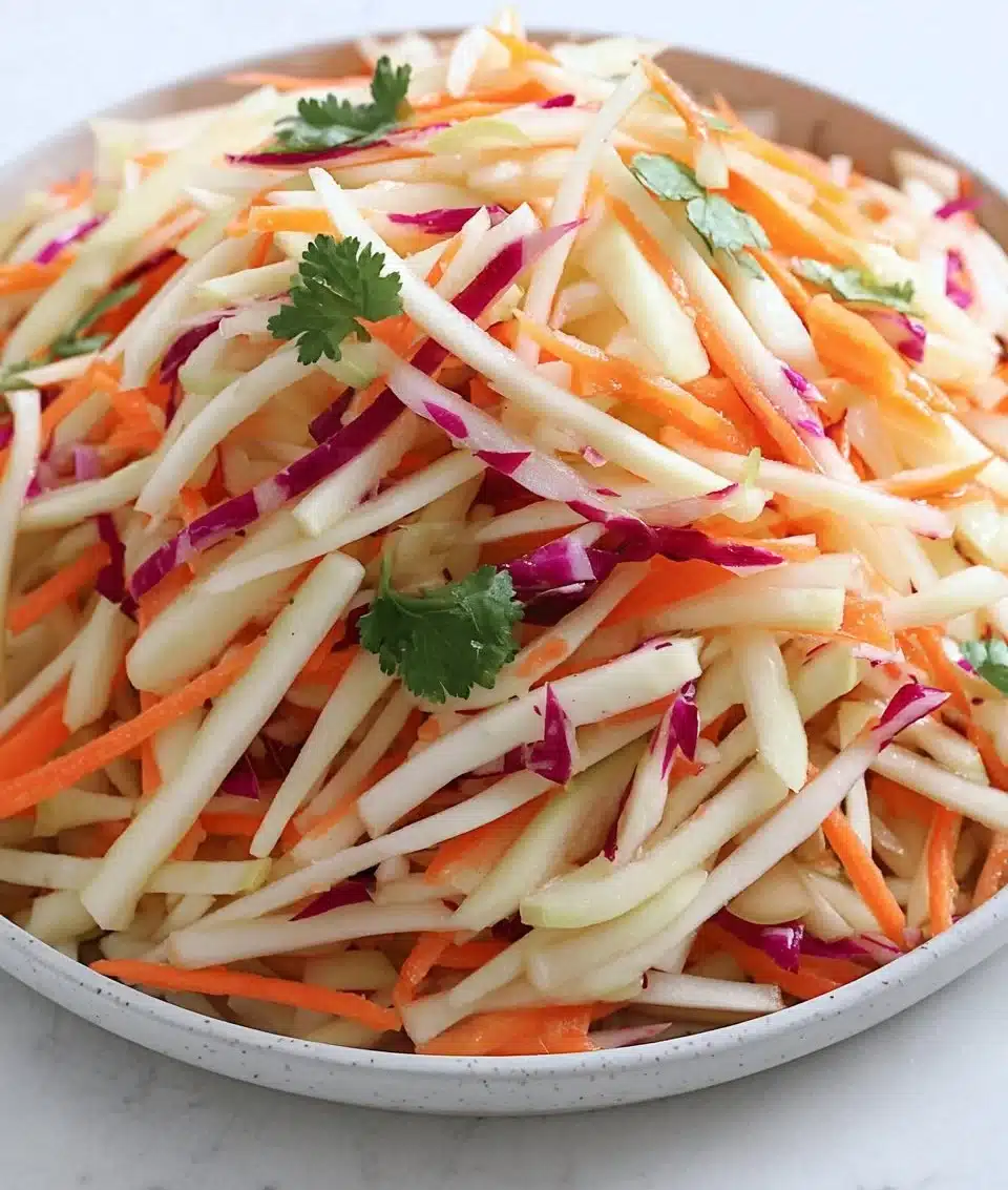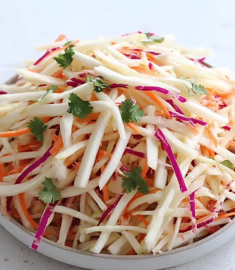 Jicama Slaw is a refreshing salad that pairs beautifully with various dishes, especially in Latin American cuisine. Originating from Mexico, jicama—a root vegetable—provides a crisp, slightly sweet flavor that makes it an excellent addition to salads and slaws. This dish is not just a feast for the eyes but also a delightful blend of textures and tastes, bringing together the sweetness of carrots, the crunch of jicama, and the brightness of cilantro.