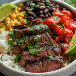 Originating from the rich culinary traditions of Mexico, these steak bowls embody the country’s love for bold flavors and fresh ingredients. The marinated steak is infused with aromatic garlic and earthy cumin, while the lime juice provides a tangy kick that balances the richness of the meat. This dish is more than just a meal; it’s a celebration of the vibrant culture and culinary heritage that inspires home cooks around the globe.