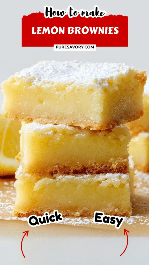 In conclusion, lemon brownies are a delightful and refreshing dessert that can brighten any occasion. Their perfect balance of tangy and sweet flavors makes them a favorite among family and friends. I hope you enjoy making and sharing these treats as much as I do! If you try this recipe, please leave a comment below to share your thoughts or any variations you’ve made. Don’t forget to share this recipe with fellow dessert lovers who would appreciate a taste of sunshine in their lives!