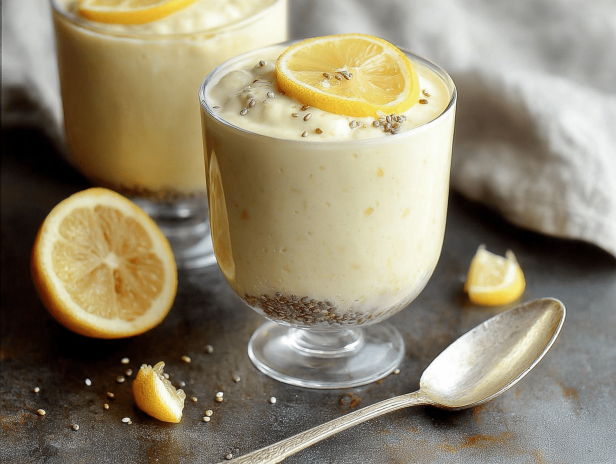 A refreshing and creamy dessert made with chia seeds and lemon.