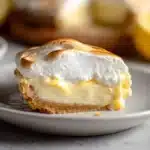 A delightful fusion of classic lemon meringue pie and creamy cheesecake, this dessert brings a refreshing burst of lemon flavor with a smooth texture and airy meringue topping.