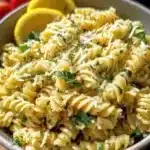 A vibrant and refreshing pasta salad that combines the zesty flavor of lemon with the creaminess of Parmesan cheese.