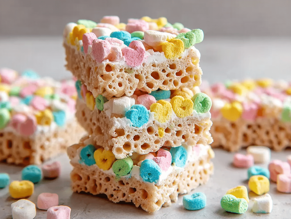 Lucky Charms Krispie Treats are perfect for busy families looking for a fun dessert, health-conscious cooks who want to indulge without guilt, and food lovers who appreciate a playful twist on a classic recipe. Whether you’re preparing them for a birthday party or a cozy family night, these treats are sure to delight everyone.