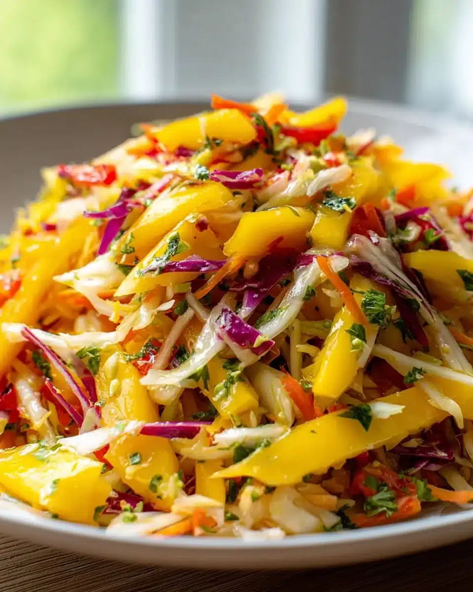 A vibrant and refreshing Mango Slaw that combines ripe mangos, crunchy veggies, and zesty lime juice for a perfect summer dish.
