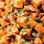 This Maple Orange Sweet Potato Salad is a celebration of those flavors, bringing together the earthy sweetness of tender sweet potatoes and the refreshing burst of citrus. The colors are a feast for the eyes—golden orange sweet potatoes, bright orange segments, and the lush green of mixed greens. Each bite offers a delightful contrast of textures, from the creamy sweet potatoes to the crunchy pecans, all drizzled with a luscious maple dressing that ties everything together.