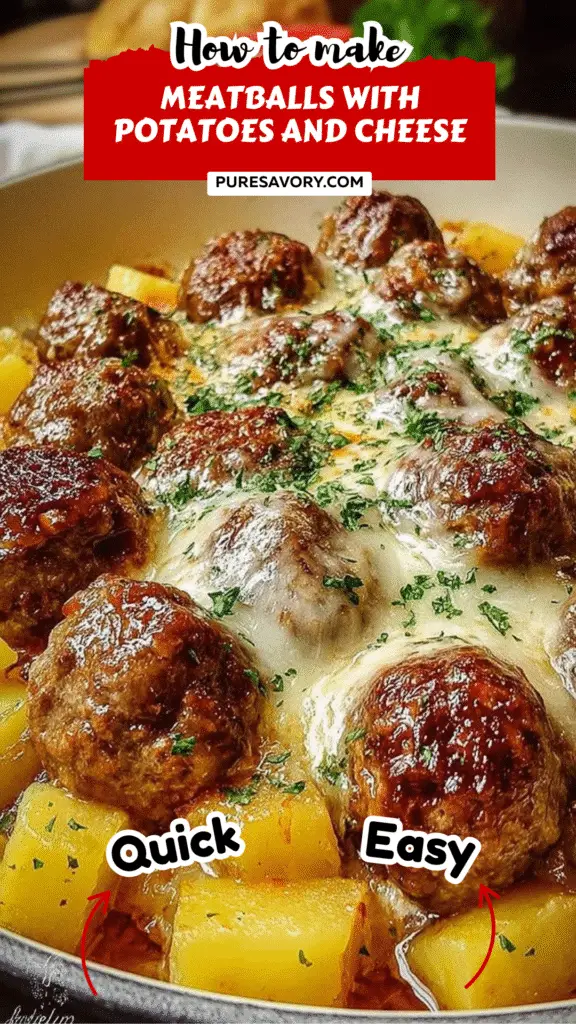 Keywords: meatball recipes, cheesy meatballs, meatballs with potatoes, ground beef recipes, easy dinner ideas, comfort food recipes, baked meatballs with cheese