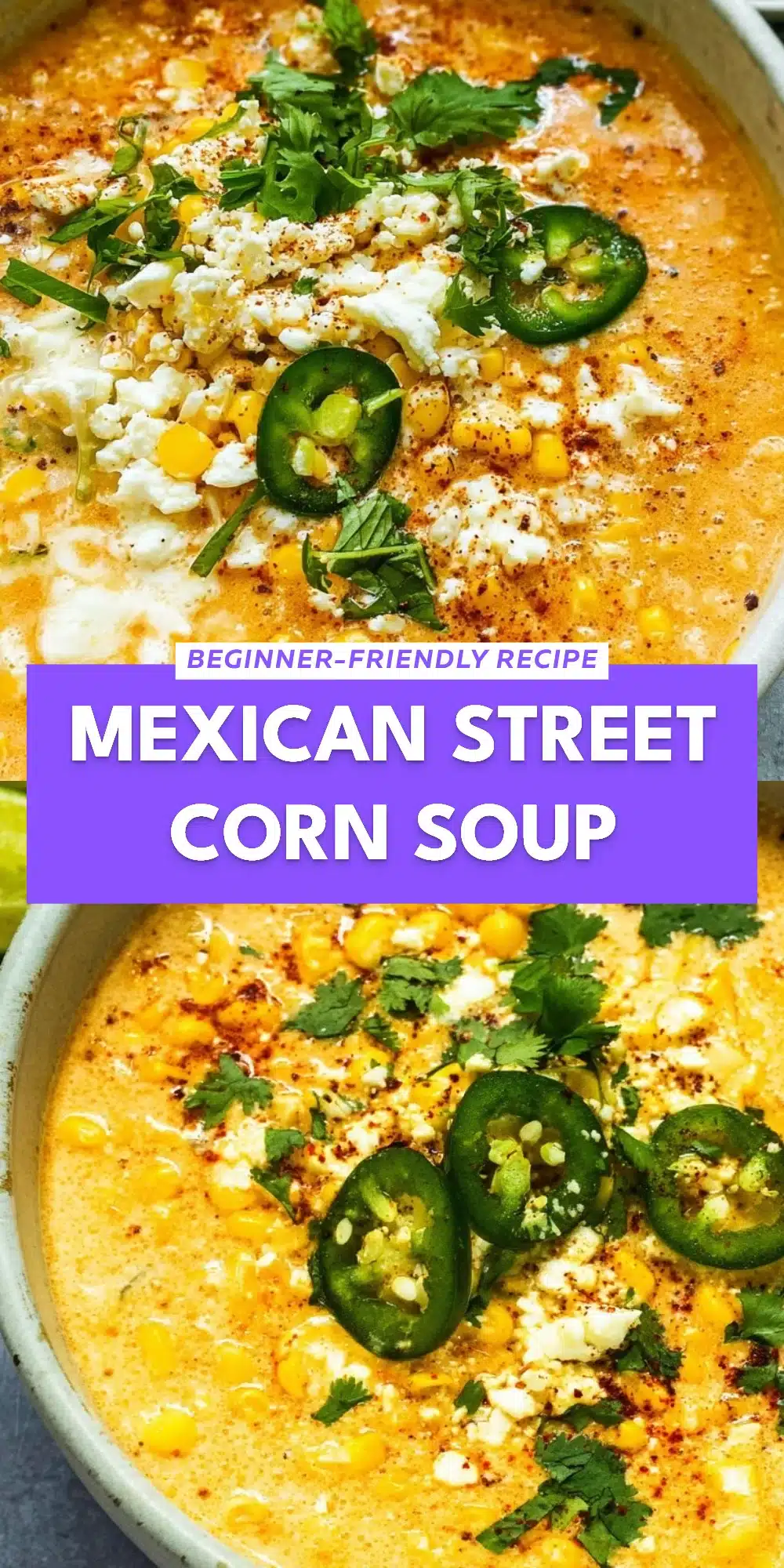 This delicious Mexican Street Corn Soup is inspired by the beloved street food known as “elote,” roasted corn on the cob slathered with creamy sauces, crumbled cheese, and a squeeze of lime. The street food scene in Mexico is vibrant, and the simple joy of enjoying elote on a warm evening has been transformed into a comforting soup that’s perfect for any time of year.