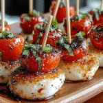 Mini Caprese Bites are a delightful twist on the classic Caprese salad, which hails from the beautiful island of Capri in Italy. This iconic dish traditionally features fresh mozzarella, ripe tomatoes, and basil, drizzled with olive oil and balsamic vinegar. The Mini Caprese Bites take this beloved combination and transform it into a fun, bite-sized appetizer that’s perfect for any occasion.