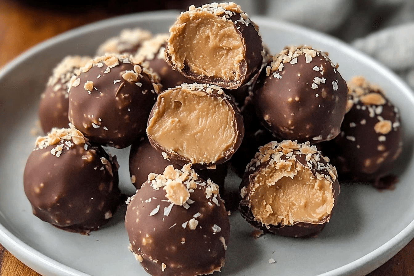 Keywords: no bake peanut butter balls, easy peanut butter dessert, chocolate dipped peanut butter balls, quick no bake recipes, peanut butter snack ideas, simple dessert recipes, homemade energy balls