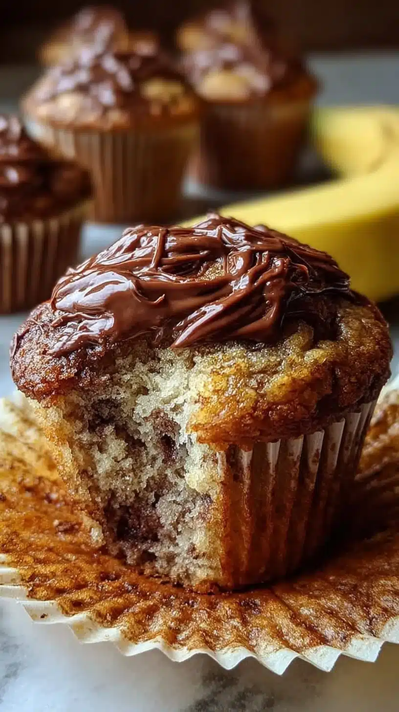 Delicious muffins combining ripe bananas with creamy Nutella for a sweet and indulgent treat.