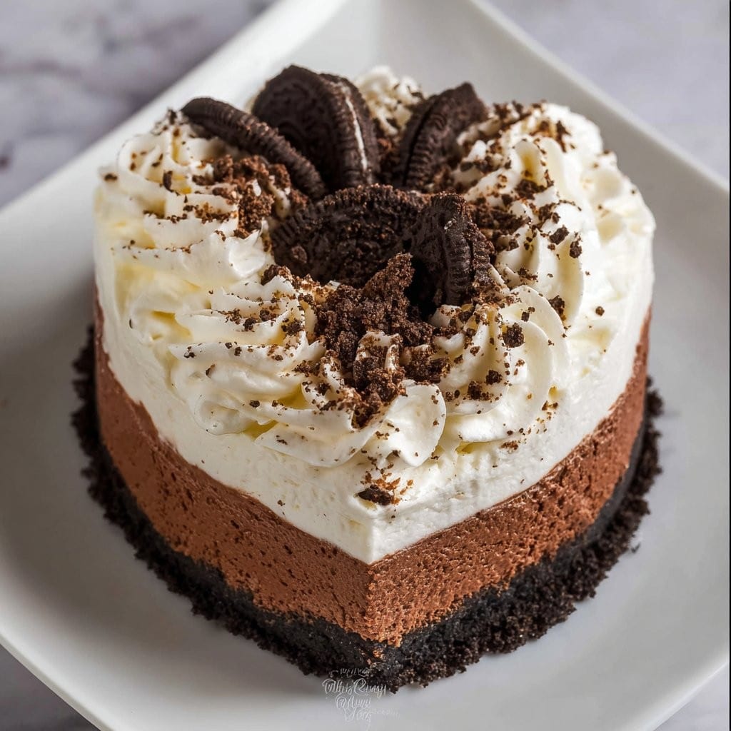 A decadent dessert recipe for chocolate lovers featuring a rich chocolate mousse layered with crushed Oreo cookies.