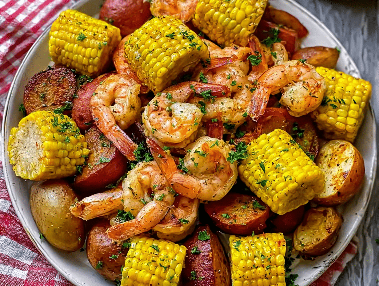 A delicious and easy way to enjoy a classic shrimp boil, baked in the oven for a flavorful meal.