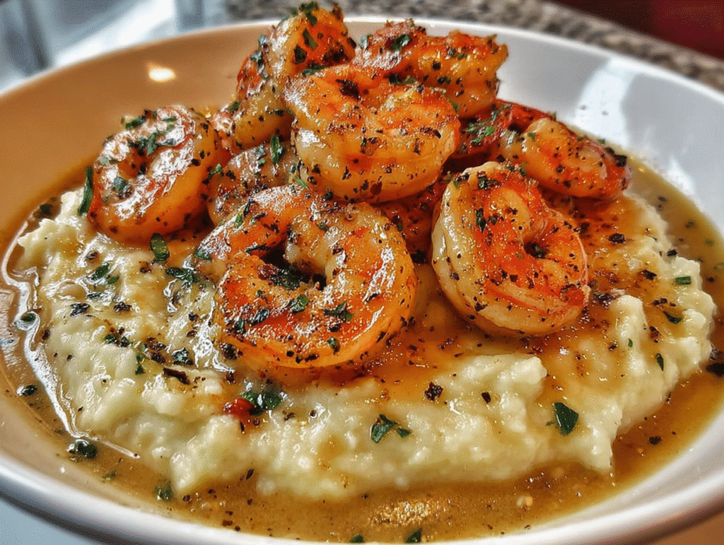 Creamy Garlic Shrimp Over Mashed Potatoes