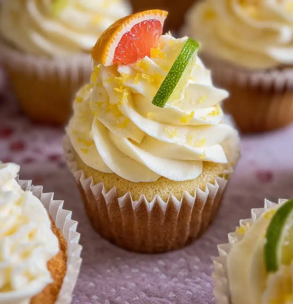 Delightful cupcakes inspired by the classic Paloma cocktail, infused with tequila, fresh lime, and grapefruit for a vibrant taste.