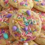 Delightfully soft and chewy cookies featuring pastel M&M’s, white chocolate chips, and rainbow sprinkles, perfect for spring celebrations.