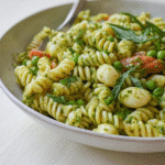 A refreshing and vibrant pasta salad perfect for spring dinners, featuring fresh pesto, pasta, and seasonal vegetables.