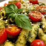 I still remember the first time I tasted Pesto Pasta with Cherry Tomatoes. The crisp bite of fresh cherry tomatoes paired with the vibrant, herbaceous notes of homemade pesto transported me straight to a sunlit Italian terrace. It was one of those dishes that woke up my senses, filling the air with the fragrant aroma of basil and garlic—pure comfort on a plate.