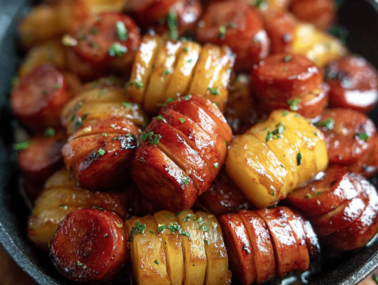 Pineapple Hasselback Kielbasa Bites are a delightful fusion appetizer that combines the sweetness of fresh pineapple with the savory richness of kielbasa. This dish showcases the Hasselback technique, where ingredients are sliced partially to create a fan-like appearance, allowing for maximum flavor absorption and visual appeal. Originating from a blend of American and global culinary influences, these bites are not only delicious but also a feast for the eyes.