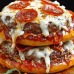Pizza Burgers are a delightful fusion dish that combines the classic American burger with the beloved flavors of pizza. Imagine biting into a juicy beef patty topped with rich pizza sauce, gooey mozzarella cheese, and crispy pepperoni. This innovative creation is rooted in American culinary creativity, showcasing how we love to blend our favorite foods into something new and exciting.