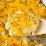 A creamy and indulgent side dish featuring layers of sliced potatoes, sour cream, melted cheese, and a crunchy breadcrumb topping.