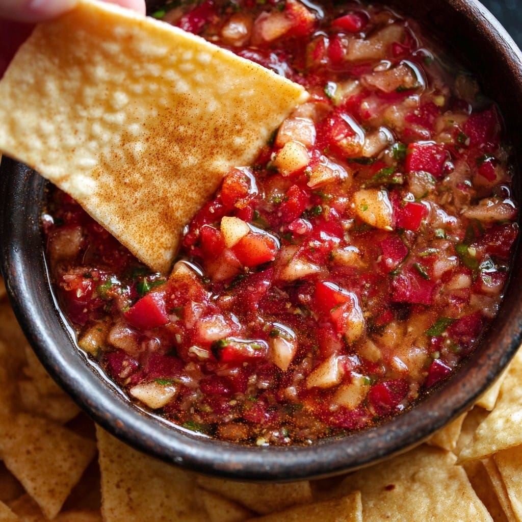 As I prepared this dish for the first time, I was reminded of my travels through Mexico, where street vendors would serve fresh salsa with crispy snacks. The aroma of spices and the vibrant colors of the ingredients inspired me to recreate that experience at home. This Quick Salsa with Cinnamon Chips is not just a recipe; it’s a celebration of flavors that brings people together.