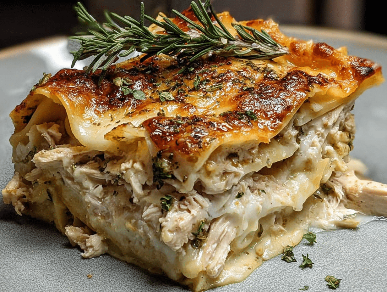 In conclusion, Rosemary Chicken Lasagna Layers is a delightful dish that combines comfort and flavor, making it a perfect addition to your family meals. I hope you enjoy making this recipe as much as I do, and that it brings warmth and joy to your table. If you try it out, please share your thoughts in the comments below or share this recipe with fellow food lovers. Happy cooking!