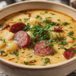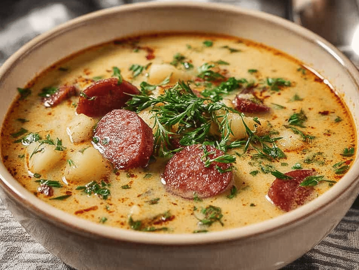 In conclusion, Sausage Potato Soup is a delightful dish that brings warmth and comfort to any table. Its rich flavors and creamy texture make it a family favorite, perfect for both busy weeknights and special gatherings. I hope you enjoy making this soup as much as I do, and I’d love to hear your thoughts! Have you tried this recipe? What variations did you make? Please share your experiences in the comments below, and don’t forget to share this recipe with fellow food lovers!