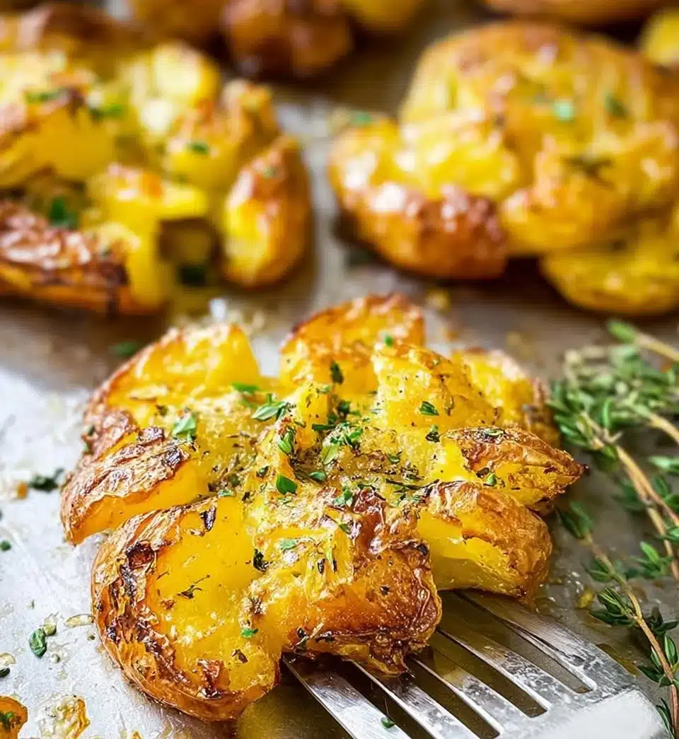 Delicious crispy smashed potatoes with a satisfying crunch and fluffy interior, perfect for any meal.