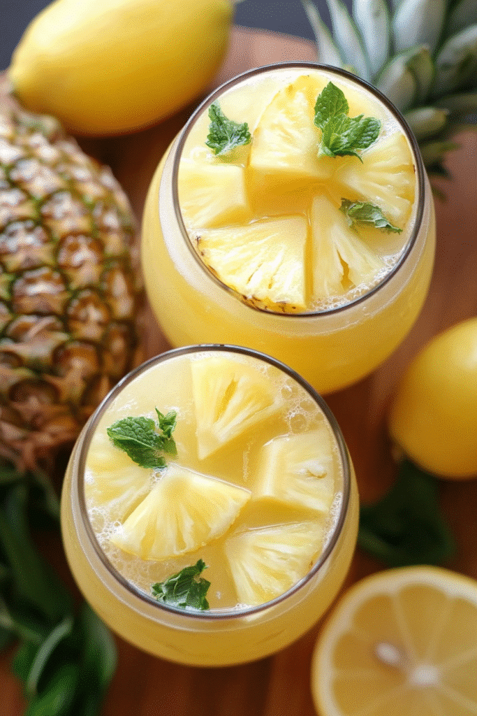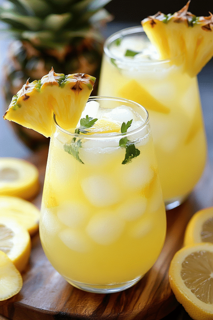 Keywords: Sparkling Pineapple Lemonade, Tropical Drink, Refreshing Beverage